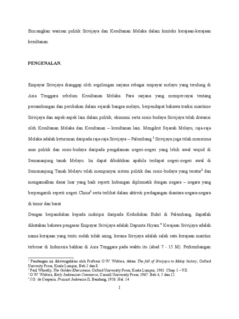 Berpegang kepada tatatertib dan adab sopan bangsa Melayu serta agama Islam. Rumusan kesultanan melayu melaka. PENGENALAN Sejarah Melaka bermula dengan pengasasan oleh PARAMESWARA bangsawan Srivijaya dari Palembang keturunan Majapahit pada tahun 1400 1403.