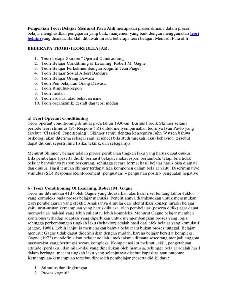 Pengertian Teori Belajar Menurut Para Ahli Pdf