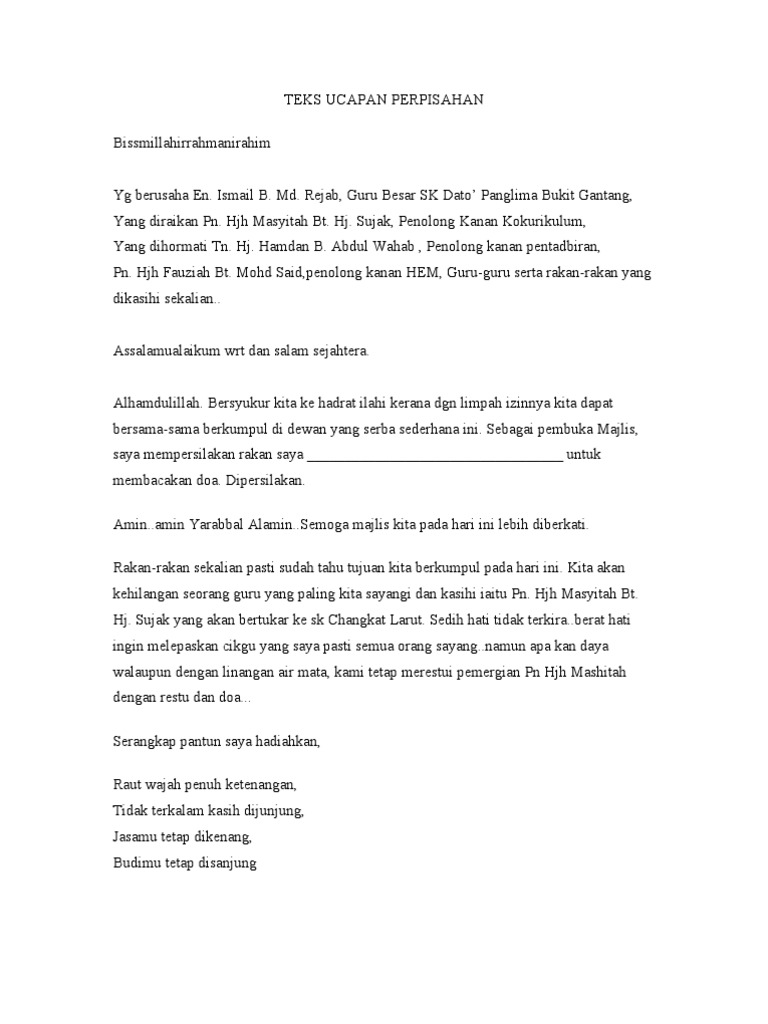 Namun kami perlu memohon maaf atas segala kekurangan itu. Teks Pengacara Majlis Persaraan Gb Skstj2 Pdf. Ucapan perpisahan persaraan archives 1001.